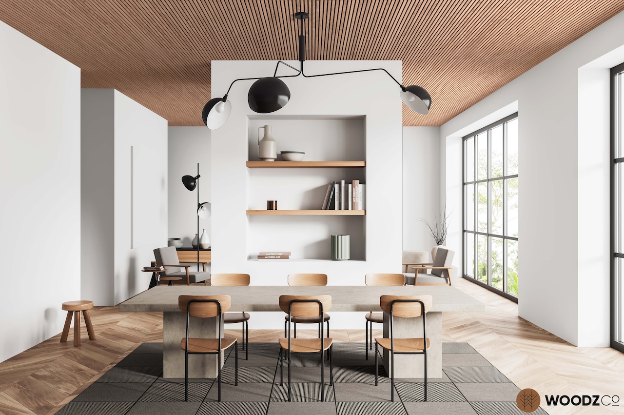 En plus d’offrir la richesse et l’esthétique du bois naturel sous forme de lattes de bois, les panneaux réduisent les bruits ambiants pour créer une ambiance feutrée.